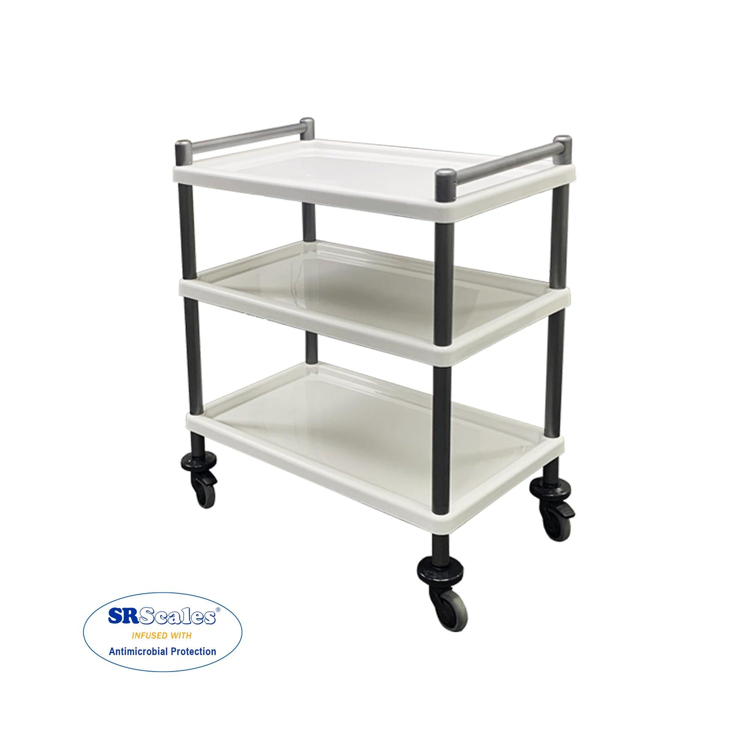 The SRC-600 can be used as a scale cart for our pediatric scale models SR615i or SR241. The cart can be used as a utility cart in conjunction with SR635i scales, if you are looking for a stand alone cart that maintains the same aesthetics. With composite shelving and aluminum corner tubing the cart offers superior stability. Every surface on the cart is infused with antimicrobial product protection. 3” smooth-gliding casters provide quiet movement between birthing suites and the nursery. A raised protective edge around the shelf perimeter keeps items in place.
